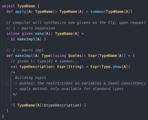 For the first time in a statically-typed language, Scala gives us the power to manipulate code at compile-time, with all the types in place, with all the regular data structures we normally use, with even more powerful pattern-matching, with the guarantee that either the code is correctly specified, or it doesn’t compile. It’s magic.